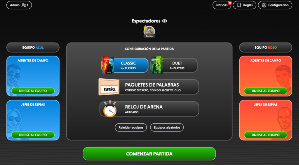 This classic word association game has an excellent web version, perfect for playing with friends online. Teamwork and clever clues make it one of the best online games with friends for medium sized groups.