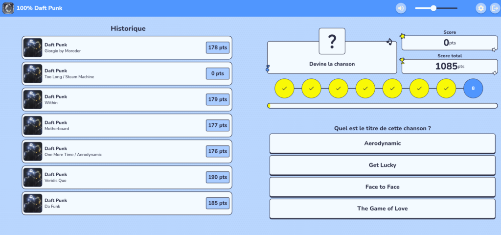 Le principe est simple : tu lances un blind test depuis n’importe quel téléphone, tu choisis parmi des centaines de playlists (années 80, hits du moment, rap, variété…), ou tu crées ton propre thème pour le rendre encore plus adapté à votre groupe.